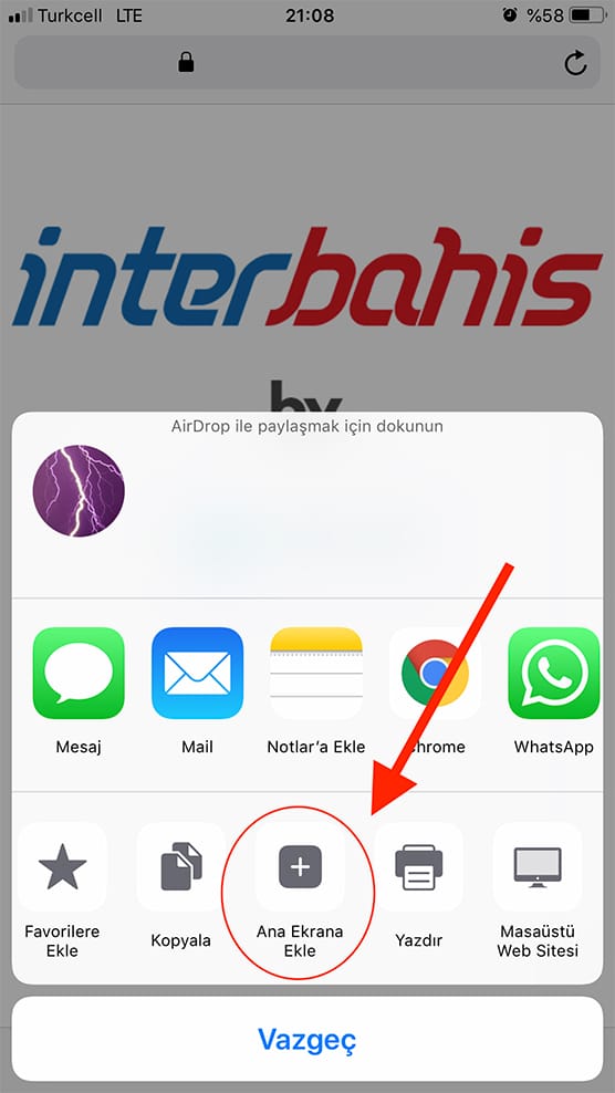 Açılan adreste İOS için "Paylaş", Android için "3 Nokta" butonuna basın.