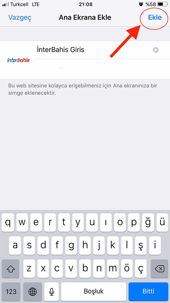 Gelen ekranda bulunan "Ekle" butonuna basın.